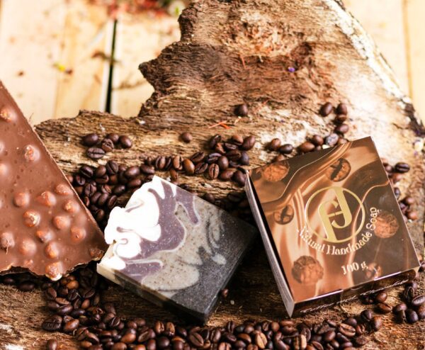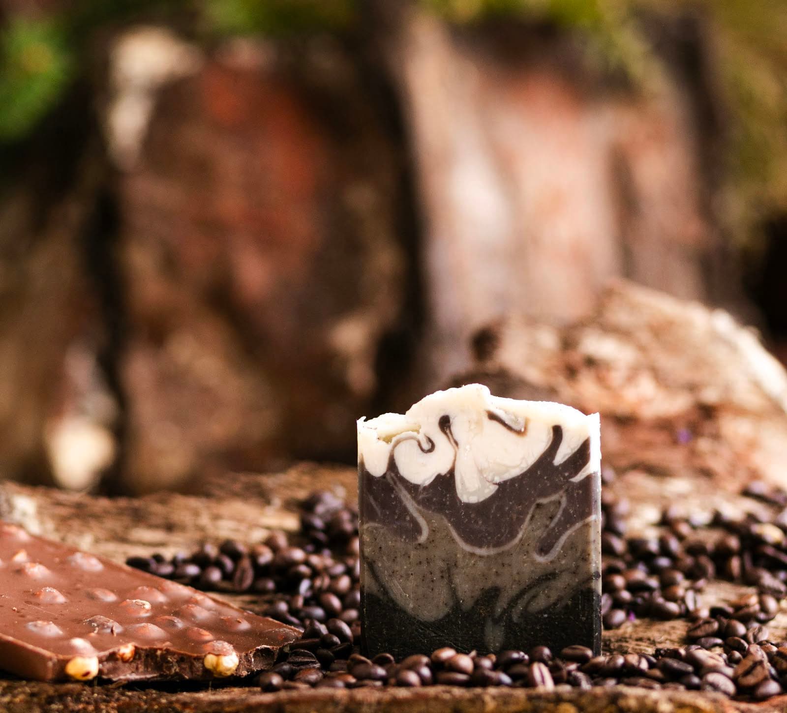 Сапунът „Кафе и шоколад“ комбинира ароматната сила на кафето с богатството на какаовото масло.