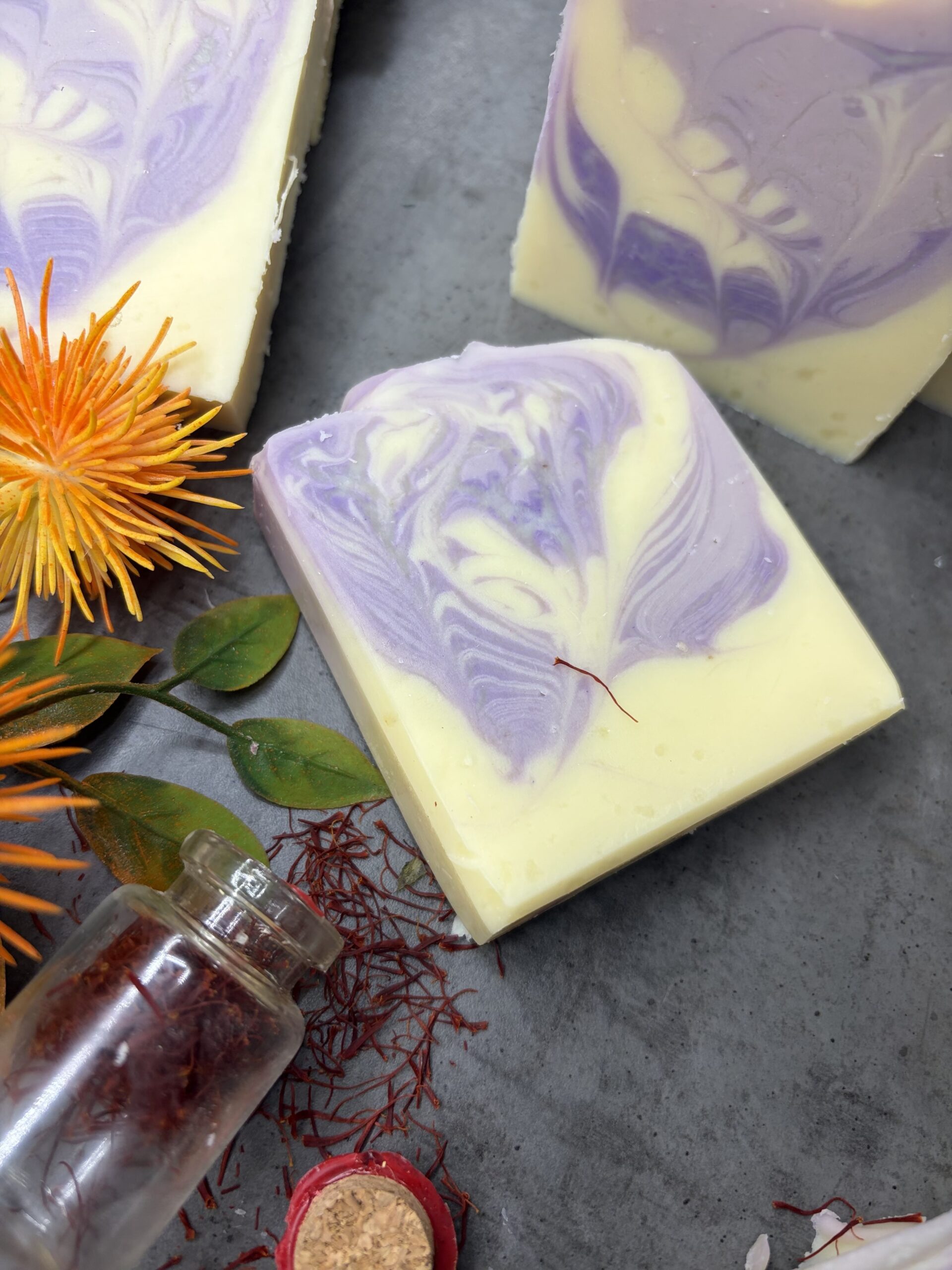 Сапунът с „Шафран и Оризово Мляко“ е ръчно изработен с внимателно подбрани съставки, които почистват нежно и се грижат за кожата в дълбочина. Комбинацията от шафран и оризово мляко подпомага изсветляването на тена, придава сияние и подобрява еластичността. Оставя кожата мека, гладка и с равномерен, бистър вид, с фин, топъл аромат. Подходящ за ежедневна грижа и за всеки тип кожа.